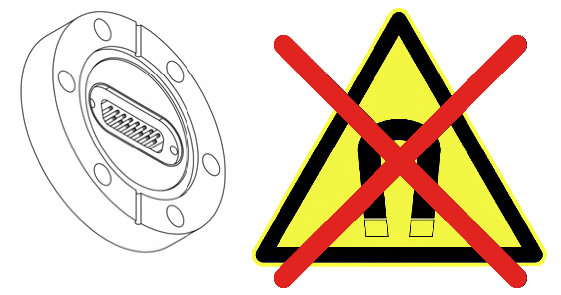 标准的Sub-D真空馈通有微弱的磁性。在某些应用中,我们提供采用316LN材质的法兰,磁导率μ<1.008。