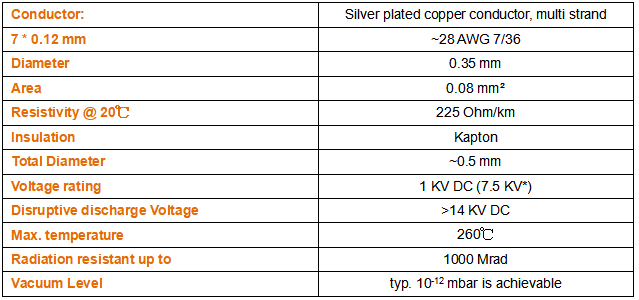 一、超高真空线缆-301-KAPM-X多股镀银铜绞线