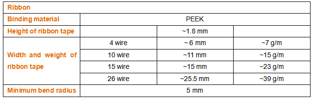耐辐射的带状线缆:4/10/15/26芯,可耐高温260°C。